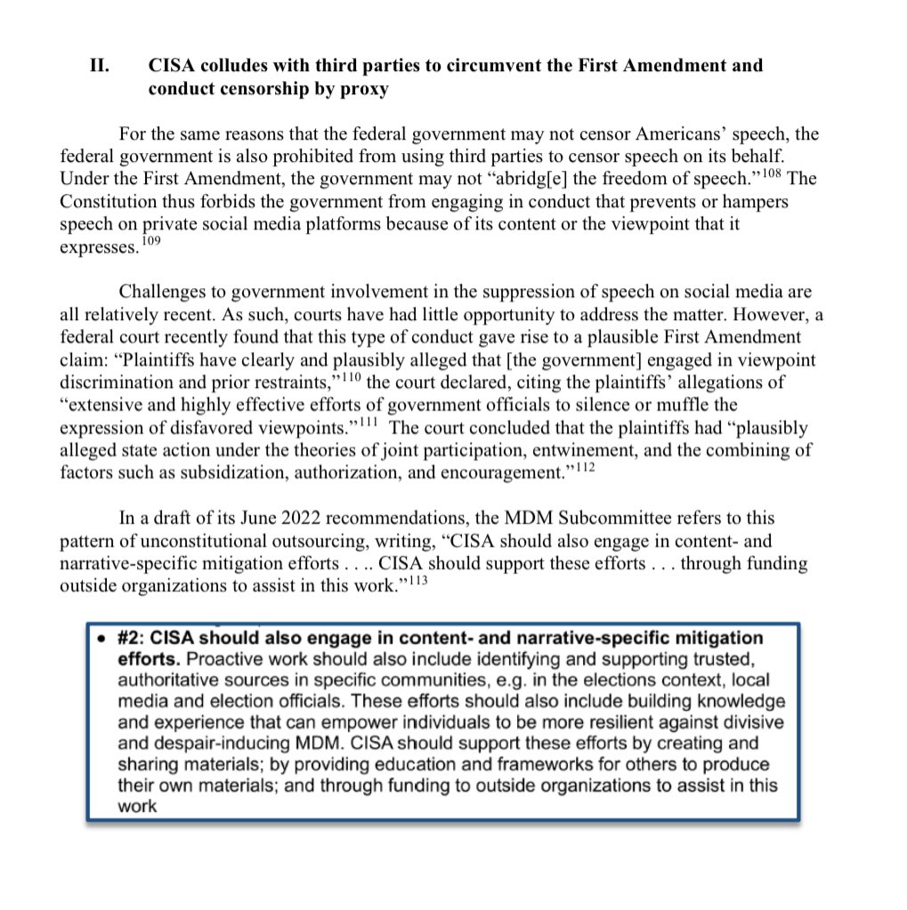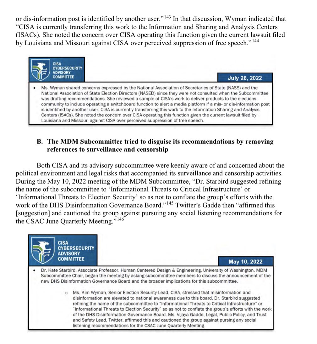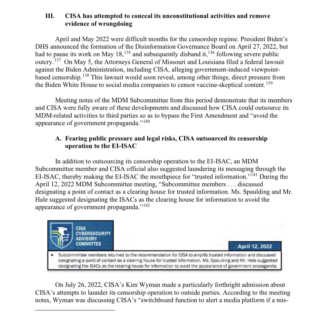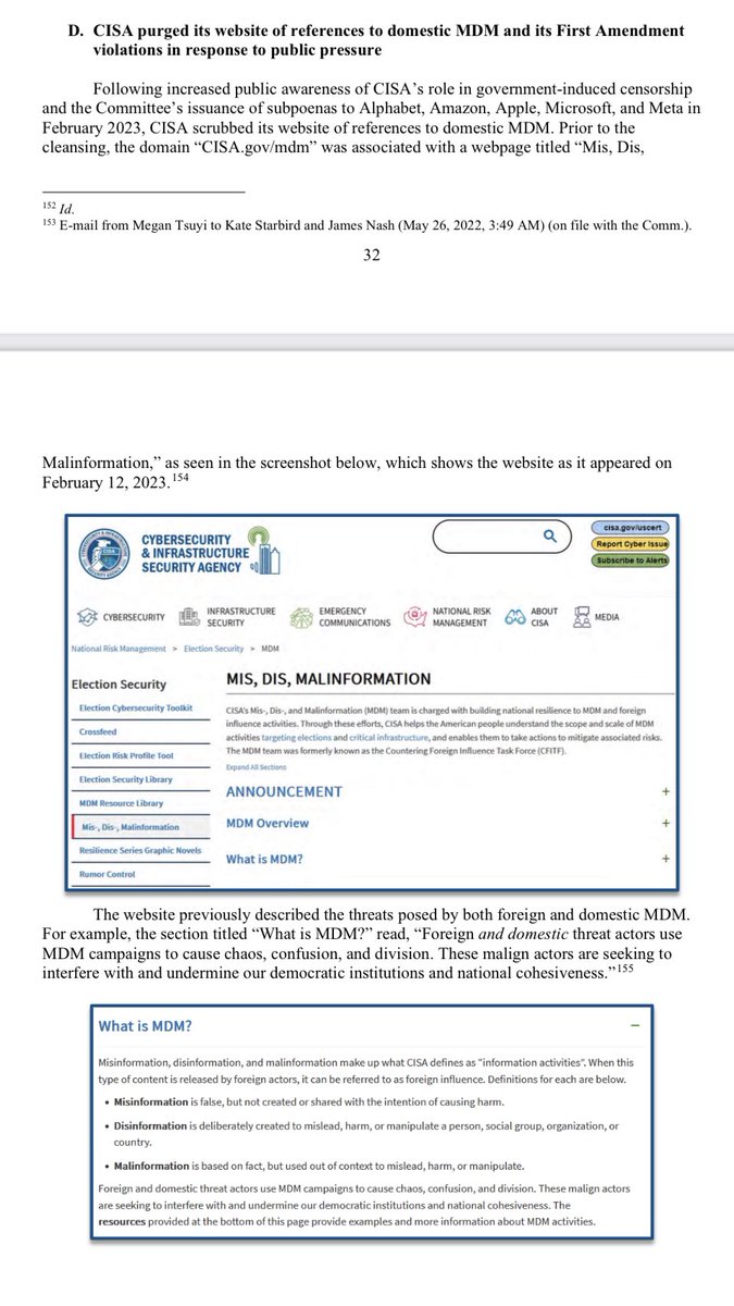 New Report Reveals CISA Tried to Cover Up Censorship Practices. Report outlines collusion between CISA, Big Tech, and government-funded third parties to conduct censorship by proxy and cover up CISA's unconstitutional activities. Read it here: https://judiciary.house.gov/sites/evo-subsites/republicans-judiciary.house.gov/files/evo-media-document/cisa-staff-report6-26-23.pdf https://judiciary.house.gov/sites/evo-subsites/republicans-judiciary.house.gov/files/evo-media-document/cisa-staff-report6-26-23.pdf