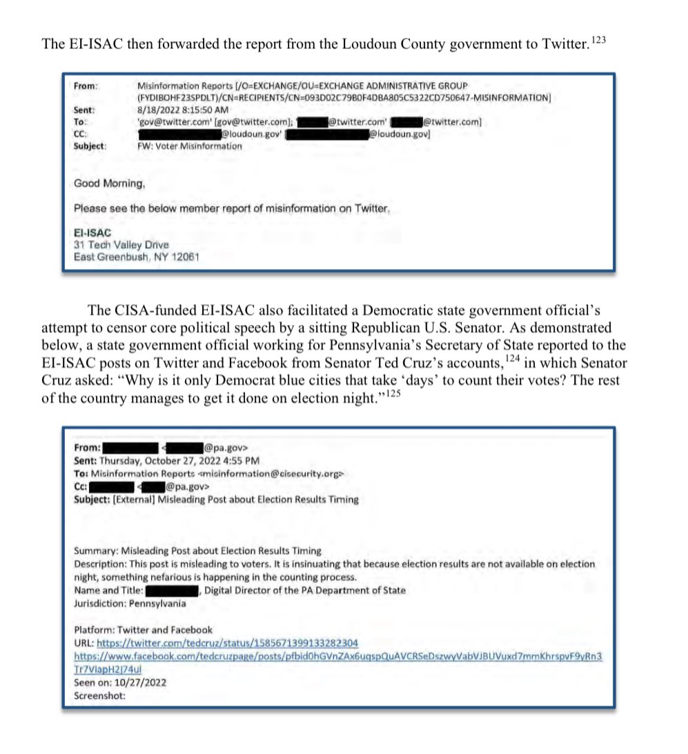 State and local election officials used the EI-ISAC in an effort to silence critics and political opponents like @SenTedCruz.