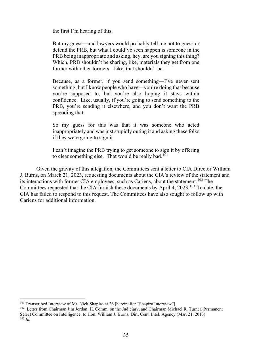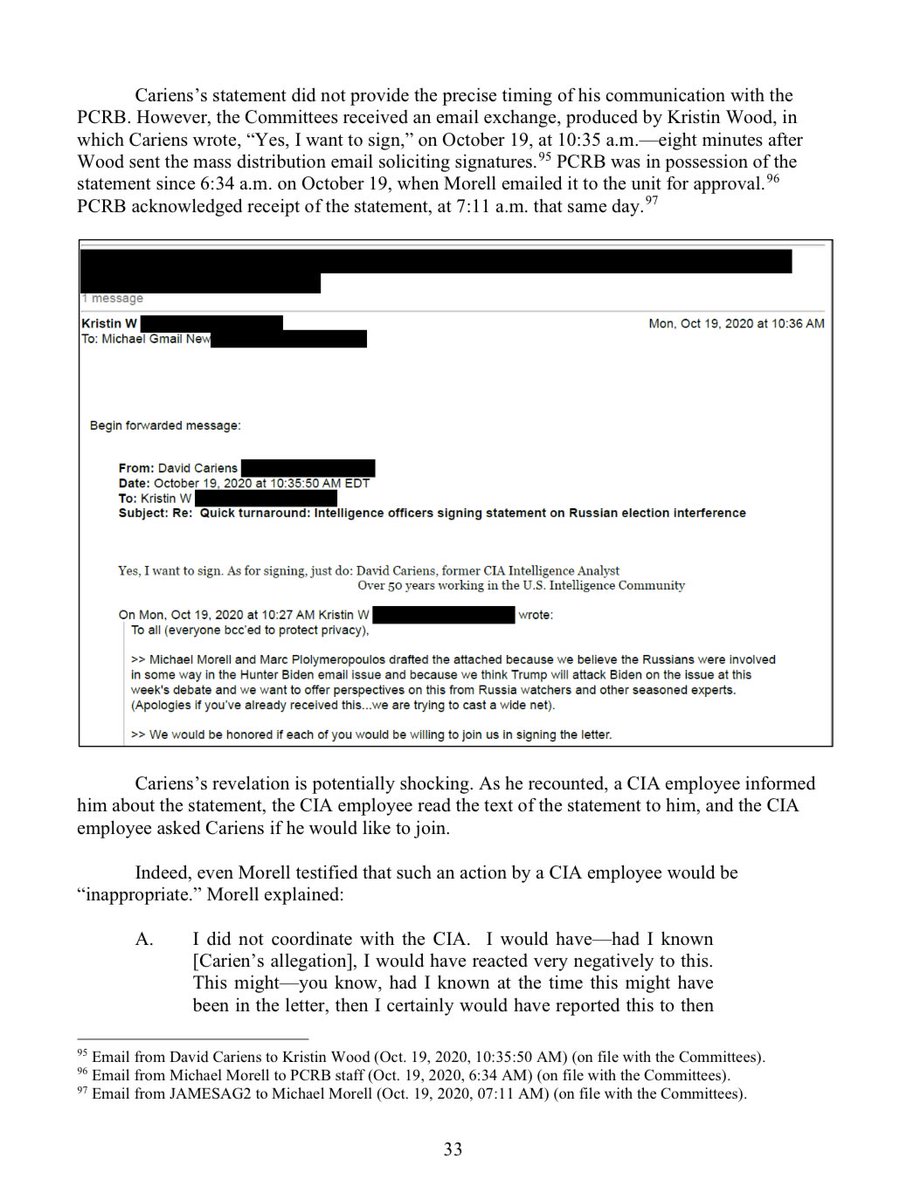 David Cariens recounted that: 1. A CIA employee informed him about the Hunter Biden “intel” statement 2. The CIA employee read him the text of the statement 3. The CIA employee asked Cariens if he’d sign the statement.