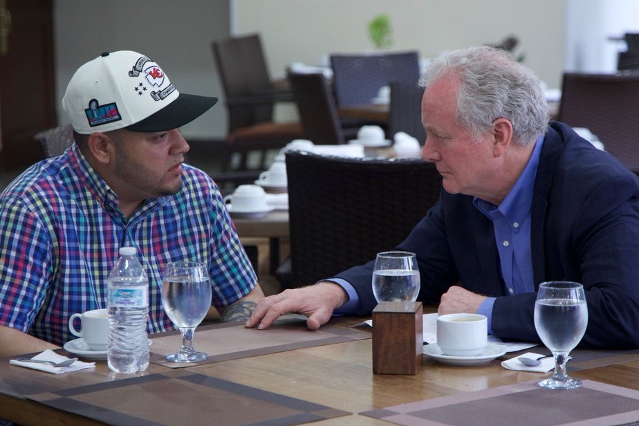 PICTURED: Democrat Senator, wearing an expression of grave concern while consoling an MS13 foreign national serial domestic abuser; while that same Senator never once considered a meeting with the family of Rachel Morin, his own constituent. Interesting optics, Senator. https://t.co/uRy8ZzPsVh