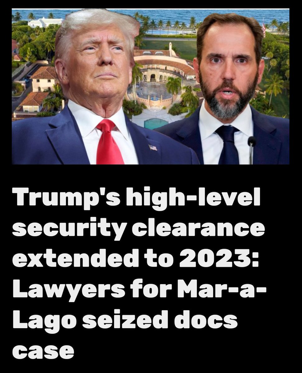 On Tuesday, former President Donald J. Trump's lawyers filed a "motion to compel discovery" in the classified documents Mar-a-Lago case. Trump's legal team argued that the former Republican President acted in "good faith and non-criminal states of mind" when he took the classified documents from the White House and transported them to his Mar-a-Lago residence in West Palm Beach, Florida, according to court documents. Additionally, Trump’s lawyers claim in the filing that a government document from June 2023 reveals that Donald Trump had a "Q" clearance from the Department of Energy, which indicates he maintained an active security clearance years after he left the White House. At a November court hearing in Florida, Trump attorney Todd Blanche made his initial public mention of the "Q" clearance. He stated that he had obtained information that Trump "continued to have an active clearance" at that time," according to the Washington Post. The outlet stated that a "Q" clearance "refers to a type of security clearance handled by the agency, whose classified information focuses largely on nuclear secrets." The 65-page legal filing requests prosecutors with special counsel Jack Smith's office to produce further information about the alleged evidence they have on the former president. They demanded correspondence between Smith's office and the Biden administration, contending that such correspondence could expose the political motivations behind the indictment against Trump. Furthermore, they urged prosecutors to provide additional substantiation regarding the alleged harm inflicted by Trump’s possession of the documents. The Energy Department is accused in the filing of attempting to alter an "inconvenient truth" by removing Trump’s name from the clearance list several weeks following his indictment. A previous court filing claims that one of the documents Trump had stored in his personal Florida residence pertained to nuclear codes, which is reportedly off-limits, despite a "Q" clearance. However, that document had been found to be marked "formerly restricted," according to the Washington Post. Trump has pleaded not guilty to 40 counts, which include willful retention of national defense information; obstruction, withholding or altering of documents; and making false statements. Donald Trump, who is the frontrunner in the 2024 GOP primary presidential election, has maintained his innocence. The case was brought forth by President Biden's Special Counsel Jack Smith. Trump has accused President Biden of weaponizing the Department of Justice against his top political rival. https://thepostmillennial.com/trumps-high-level-security-clearance-extended-to-2023-lawyers-for-mar-a-lago-seized-docs-case