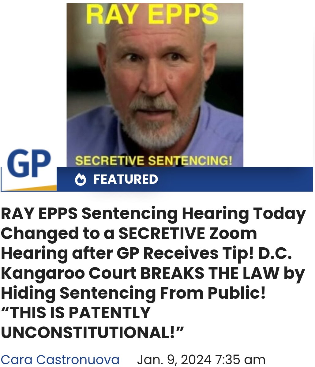 Ray Epps will be sentenced today via a secretive Zoom call that is not open to the public or journalists. The D.C. Kangaroo Court suddenly changed Ray Epps’ in-person public sentencing hearing to a private/remote Zoom hearing yesterday evening. Epps was scheduled to appear in person today at 10 AM at the E. Barrett Prettyman United States Courthouse in Washington D.C today for his sentencing. According to the Court Docket, on 1/8/24 the hearing was modified to a “hybrid hearing” (government in person/defense via Zoom.) As reported by the Gateway Pundit, Epps was just sued by J6 defendant Eric Clark for “Conspiracy to Violate Civil Rights”. The case was filed in a Utah Federal Court. The Gateway Pundit had a tip that Ray Epps was going to be served with the lawsuit at the courthouse during his sentencing. Process servers were hired by the Plaintiff and our reporters were scheduled to be there to capture the moment Epps was served on video. This was all discussed yesterday in private phone calls. Then like magic, Ray Epps’ Fairy Godmother changed his PUBLIC IN-PERSON sentencing hearing to a PRIVATE REMOTE TELEPHONIC sentencing hearing. What a coincidence. This was approved by the Dishonorable Obama-appointed Chief Judge James Boasberg. “What more proof is needed to show that the government is protecting Epps?!” said an attorney who is fearful of retaliation. According to another legal expert: “It seems like someone certainly tipped off the powers that be. This is unheard of and furthermore it is illegal for the government to hide a sentencing hearing from the public.” This is also patently unconstitutional. See the citation below from United States v. Thompson, 199 F. Supp. 3d 3, 9 (D.D.C. 2016). This applies to sentencing memorandum, and equally applies to a sentencing hearing itself. “Public access to sentencing memoranda permits public oversight at sentencing and serves to ” ‘check any temptation that might be felt by either the prosecutor or the court … to seek or impose an arbitrary or disproportionate sentence’; promote accurate fact-finding; and in general stimulate public confidence in the criminal justice system by permitting members of the public to observe that the defendant is justly sentenced.” Kravetz,706 F.3d at 57 (internal citations omitted). As such, the Court concludes that there exists a First Amendment qualified right to public access of the Government’s Addendum to its Memorandum of Sentencing. For some strange reason, the law does not seem to apply for Ray Epps’ sentencing. Nor does the law seem to apply for anything else relating to January 6th and the political persecution of Trump Supporters. On a positive note, this all shows how desperate they are. They know they are losing and the truth is being exposed. Because in the end GOD wins. https://www.thegatewaypundit.com/2024/01/ray-epps-sentencing-hearing-today-changed-secretive-zoom/