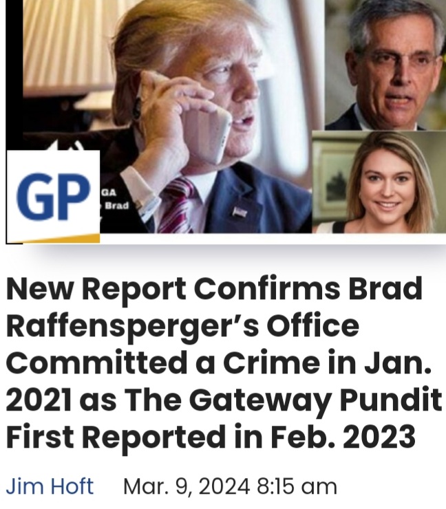 This report was originally published by Joe Hoft at The Gateway Pundit on February 21, 2023. On Thursday Mollie Hemingway at The Federalist confirmed our reporting from February last year. A new book from Mike Isikoff and Daniel Klaidman admits that a widely misunderstood phone call, on which Willis’ political prosecution rests, was illegally recorded. That means the entire prosecution could crumble with defendants having a new avenue to challenge Democrat lawfare. Find Me the Votes: A Hard-Charging Georgia Prosecutor, a Rogue President, and the Plot to Steal an American Election is a fawning political biography of Willis. For context on the bias of the authors, Isikoff was an original Russia-collusion hoaxer, and his articles to that end were used to secure warrants for the FBI to spy on innocent Republican presidential campaign advisers such as Carter Page. President Trump lined up a call with Secretary of State Brad Raffensperger on January 2, 2021. President Trump had bucketloads of ballot and process issues identified in the state’s 2020 Election. Raffensperger certified the uncertifiable election of 2020 in Georgia for Joe Biden giving Biden the win by 12,000 votes. However, there were up to a million potential ballot issues with hundreds of thousands of issues identified by multiple experts. President Trump hired an audit firm to audit the state’s results after the election and he and Georgia Senator and former judge William T. Ligon found hundreds of thousands of issues with the election results that were ignored by Secretary of State Raffensperger. President Trump made a call to Raffensperger on January 2, 2021, asking Raffensperger to look at some of the items that were uncovered by his auditor. There was plenty of evidence for a man of integrity to know that the election was uncertifiable. Instead of responding to President Trump’s issues as promised during the call, Raffensperger and his team taped the call without announcing that it was being taped and shared pieces of the call with the Washington Post. Recently, the Never-Trumper Fulton County DA, Fanni Willis, put together a grand jury to look into the call to see if there were any crimes committed related to the call. Unfortunately for Willis, the case ended up being a “nothingburger“. Willis brought in 75 witnesses over a 7-month period and found nothing. President Trump did nothing wrong. He had a duty to look into the uncertifiable results in Georgia and determine how best to address the results there. After all this time and money spent, it is odd that one question never was asked of any of the witnesses in the grand jury. Who taped the call of President Trump and was it legal? Georgia is a one-party consent state. This means that in Georgia, you are legally allowed to record a conversation if you are a contributor, or with prior consent from one of the involved parties. This would suggest that it was ok for Raffensperger and his team to secretly record the call with President Trump. However, Florida is a two-party consent state. Florida recording law stipulates that it is a two-party consent state. In Florida, it is a criminal offense to use any device to record communications, whether they’re wire, oral or electronic, without the consent of everyone taking part in the communication. Fla. Stat. § 934.03(2)(d). This means that in Florida you are not legally allowed to record a conversation you are taking part in unless all parties are in agreement. Why does this matter? Because there is reason to believe that Jordan Fuchs, Georgia’s Deputy Secretary of State, who was on the call with President Trump, taped the call from Florida. Page 1 of 2 https://thegatewaypundit.com/2024/03/new-report-confirms-brad-raffenspergers-office-committed-crime/