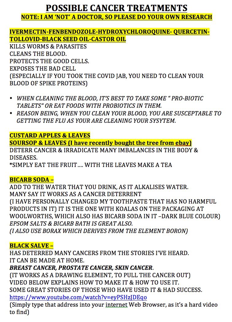 ๐ซ๐ซ๐ซ Many options to rid #Cancer ๐ฅ Rife Machine ๐ฅ Vitamin C Injections ๐ฅ Soursop OR Custard Apples ๐ฅ Dewormers such as Fenbendozole, Ivermectin, Quercetin, Black Seed Oil, Hydroxychloroquine ๐ฅ Black Salve for Breast, Skin & Prostate Cancer ๐ฅ Hydrogen Peroxide ๐ฅ Bi Card Soda & Water ๐ฅ ALWAYS DYOR ๐ฅ Good luck ๐ซ๐ซ๐ซ