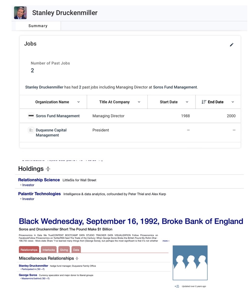 Rothschild, Soros, & Rockefeller Thread 4/ 7 George Soros, along with Stanley Druckenmiller, were responsible for “Black Wednesday” in England, by “breaking” the British Pound. Stanley Druckenmiller worked for Soros Fund Management and Soro’s Quantum Fund. Druckenmiller also works with Peter Thiel’s Palantir. Peter Thiel was an early investor in Ripple, but was called “OpenCoin” when he invested in the early days of the company. Both George Soros and Peter Thiel invest or work for many companies with “Open” in the name, including: Open Israel University, OpenDoor, OpenCoin (Ripple), OpenAI, OpenSea, Open Society, OpenCog, Open Whispers System (Signal), Open Garden, and many more. Stanley Druckenmiller also funds: Relationship Science Oscar Health Other investors of Relationship Science include: RIT Capital Partners (Jacob Rothschild) A-Grade Investments (Ron Burkely, Ashton Kutcher) > Ashton Kutcher is a Ripple promoter Stephen Luzco Stephen Luzco was CEO, Presidnet and Chairman Board of Directors of Seagate Capital, a multi-series funder for Ripple