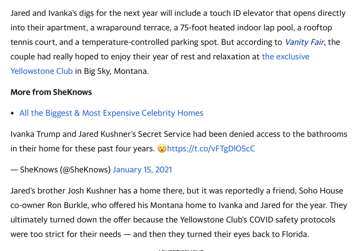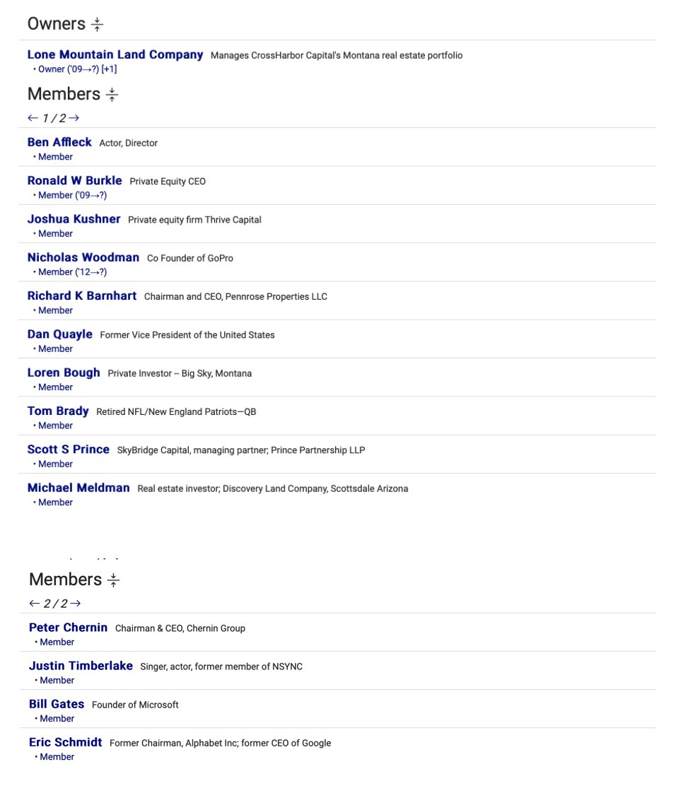 Jared and Joshua Kushner (Thread 1: Jared Kushner) Thread 1: Jared Kushner 14/ 14 Joshua Kushner is a member of Yellowstone Club, a private community and luxury real estate in Big Sky, Montana and the only private mountain ski resort in the world. Many recognizable A-lister names and billionaires are members, including: Ron Burkle, Bill Gates, Tom Brady, Justin Timberlake, Eric Schmidt and more. Jared and Ivanka were offered Ron Burkle’s home for vacation at Yellowstone during the COVID pandemic. Ron Burkle is a close business partner and friend of Ashton Kutcher. Ron, Ivanka and Jared are all in Jeffrey Epstein’s “little black book” and have all gone to his Little St. James Island. Ron is also good friends with Bill Clinton. Both his two close friends Bill and Ashton are endorsers and spokesmen for Ripple. Ron has done business with the Holy See (Vatican) and has relationships with several other members of Opus Dei. Ron has also been photographed and partying with Diddy many times over the years.