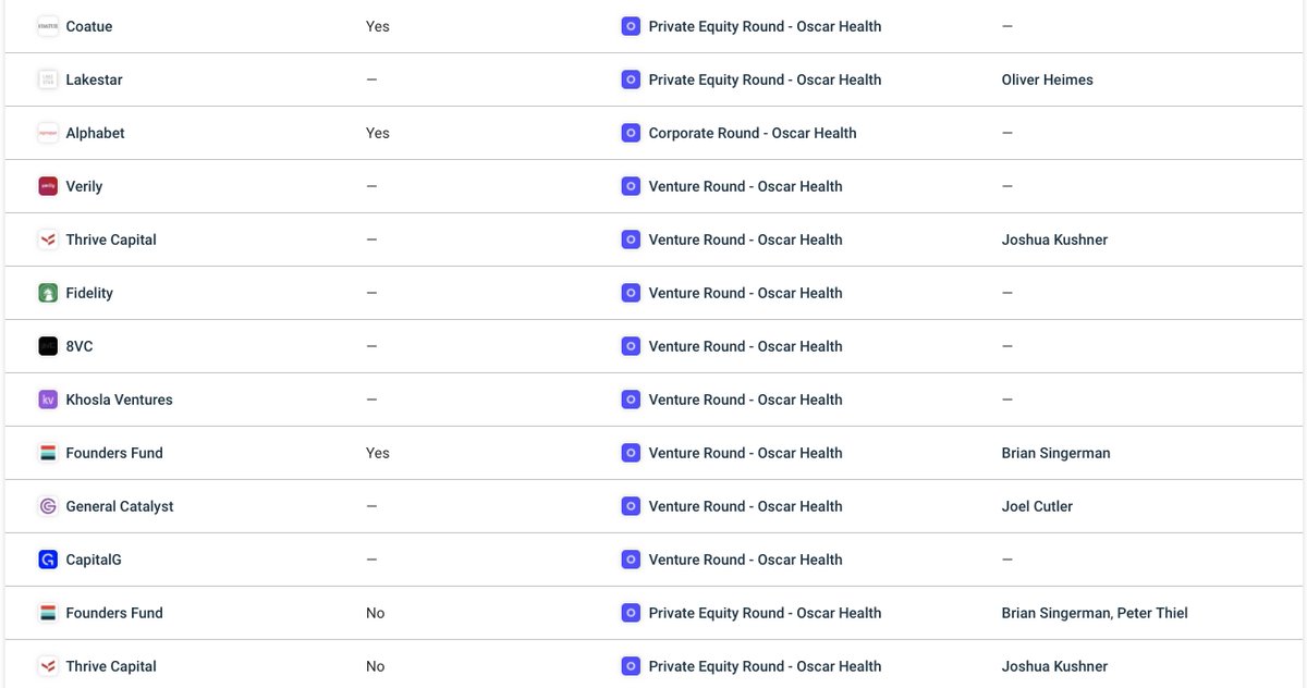 Jared and Joshua Kushner (Thread 1: Jared Kushner) Thread 1: Jared Kushner 5/ 14 Joshua Kushner’s Oscar Health Oscar Health is funded by: Thrive Capital (Kushner VC) Founders Fund (Peter Thiel, Brian Singerman) General Catalyst (Joel Cutler, Kushner friend/ GC is lead funder of Stripe, Anduril (Palantir Sister co), Circle (USDC) Cadre) Khosla Ventures (Vinod Khosla is an Epstein funded transhumanist/ Also funds Stripe, Lattice (Kushner), Cadre, Chain (Interstellar/ Stellar), Affirm (Levchin of PayPal Mafia), OpenDoor (Rabois of PayPal Mafia), Worldcoin (Altman) Wendi Murdoch (Friend of Kushner’s) K2 Global (Also funds OpenAI, Palantir, Airbnb (Altman), Coinbase Goldman Sachs (Ties to Ripple, Steve Mnuchin [Kushner friend], 666 Fifth Ave funding [Kushner property]) Stanley Druckenmiller (Palantir, Relationship Science, longtime Soros friend and co-worker) Google Ventures/ Alphabet (Seed funder of Ripple) 8VC (Joe Lonsdale of Palantir/ OpenGov VC) Tiger Global Management (Ripple funder) Bryer Capital (Jim Bryer, also funds Circle and sits on their Board, as well as funding Chris Larsen’s Prosper Marketplace and sitting on the Board with him right before Larsen left for Ripple) Former CEO of Youtube and Google Senior VP Products Salar Kamangar serves on the board of Oscar Health. Salar Kamangar was an associate of Jeffrey Epstein who attended at least one of two of Epstein’s hosted events. How deep their relationship actually was is unknown. One of Oscar Health’s leading business partners is Cleveland Clinic, which was scrutinized for working with Theranos, the Elizabeth Holmes company that was closed after she was convicted on several accounts of fraud, embezzlement and money laundering. Theranos has ties to Kushner’s friend Wendi Murdoch as her husband was a lead investor of Theranos, along with Henry Kissinger (Jared Kushner friend) Tim Draper, Betsy DeVos (Trumps Education Secretary and Erik Prince’s sister [Mentioned later in thread]), Larry Ellison (Israel IDF ties), and Fortress Investment Group (Who worked with Epstein’s Estate management and last will (1953 Trust)).