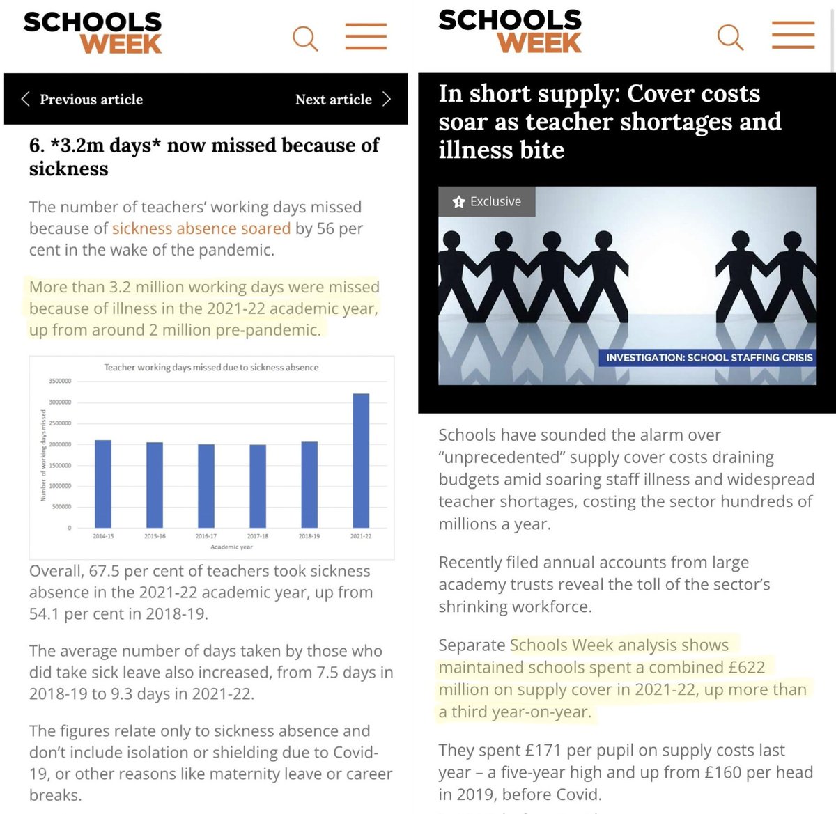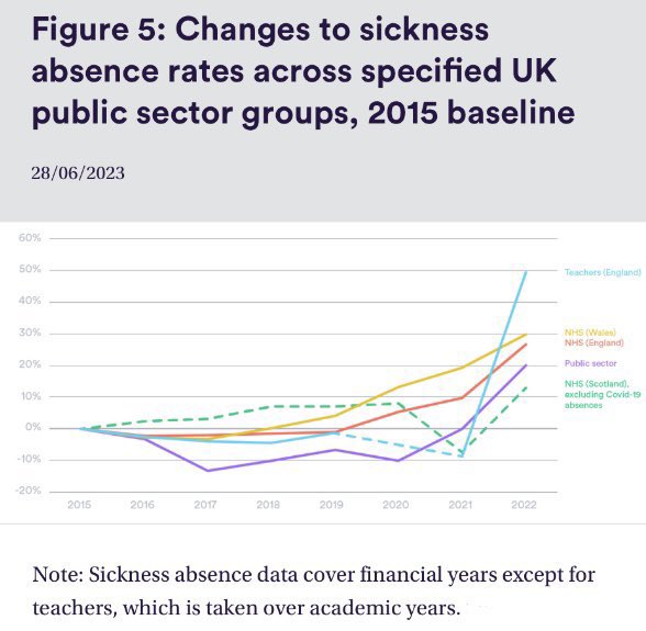 A report from Arbor Education showed that last Autumn term (2022): 📍Sickness absence for teachers MORE THAN DOUBLED compared to the pre-pandemic Autumn term 2019. 📍Absences due to colds, flu & other (unnamed!) viruses were 7x HIGHER in Autumn 2022 compared to Autumn 2019.
