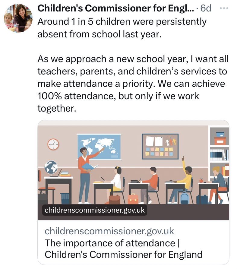 CHILDREN & SCHOOLS, a thread 🧵 Rachel de Souza (@ChildrensComm) was on TV yesterday talking about the attendance crisis in schools. The narrative she gave was extremely misleading and it’s disappointing that none of the journalists around that table challenged her on it…