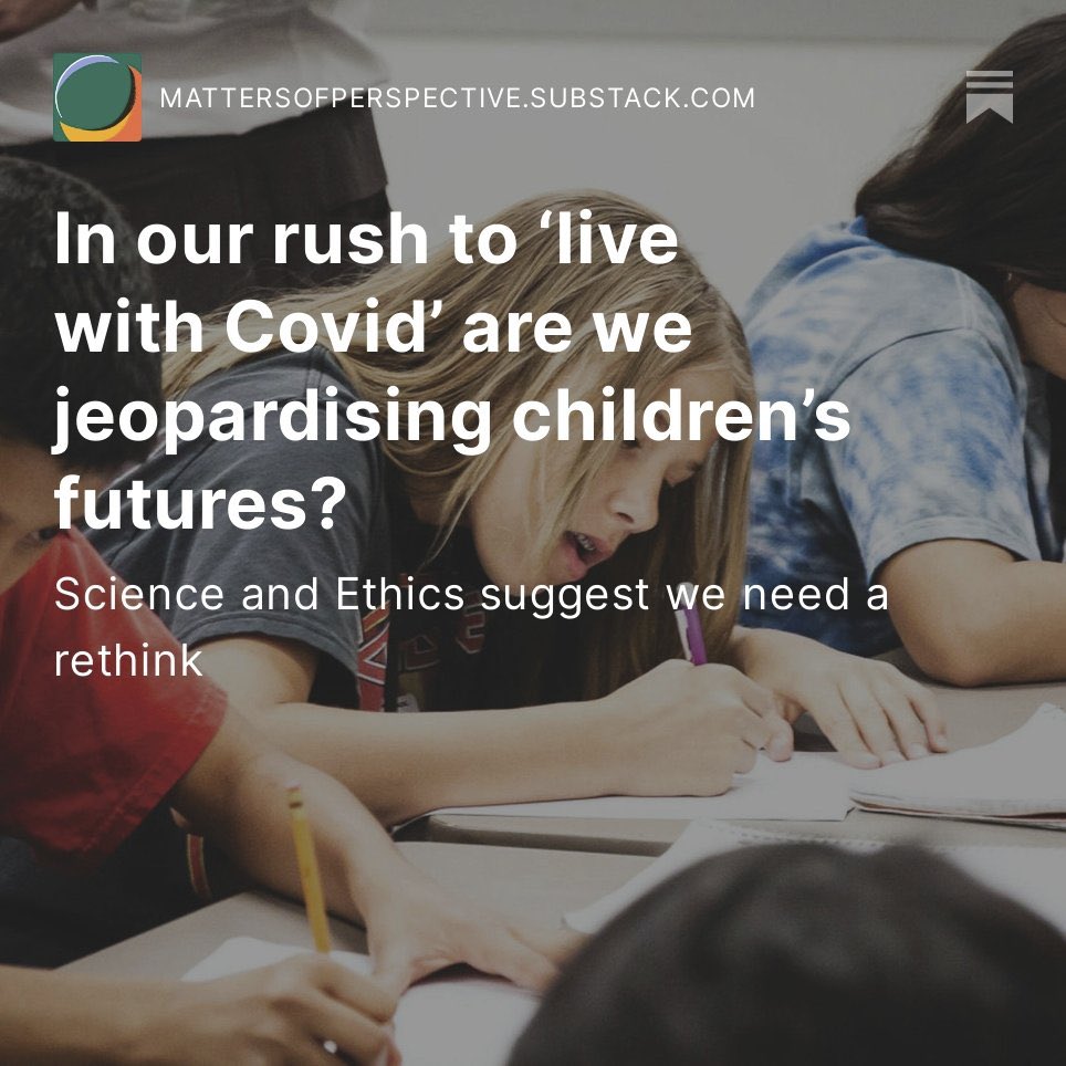 The article below from @DrNick4126 reviews the science & ethics of the situation: “Adults have the autonomy to make choices. We can ignore, engage with, or reject the available scientific data. Children have no such agency, and therefore have no choice.” https://mattersofperspective.substack.com/p/in-our-rush-to-live-with-covid-are
