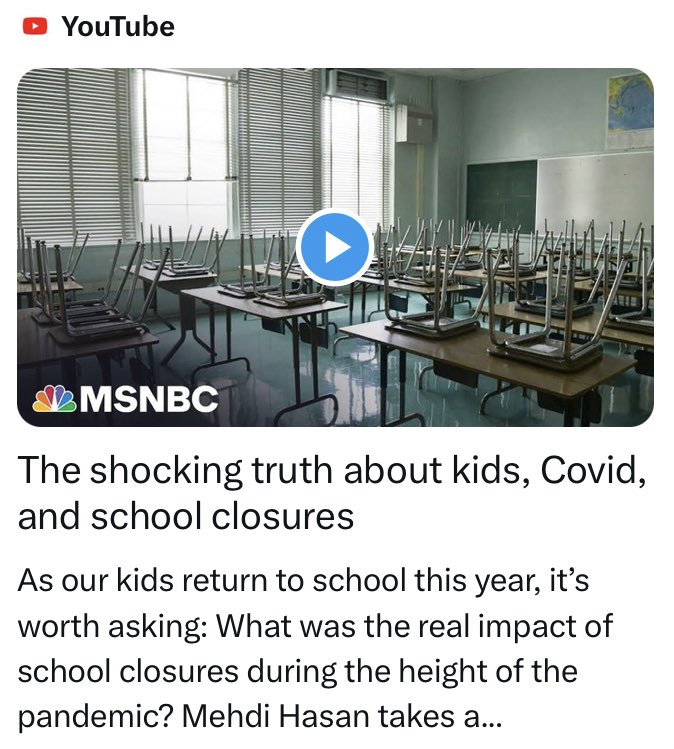 @DrNick4126 Perhaps @bbclaurak could do a proper deep dive into the impact of Covid on our children, like @mehdirhasan has done for the US audience. We need someone in the U.K. mainstream media to start digging into the truth. https://www.youtube.com/watch?v=-h5xyGdVfvo https://t.co/tjcRKHf68L