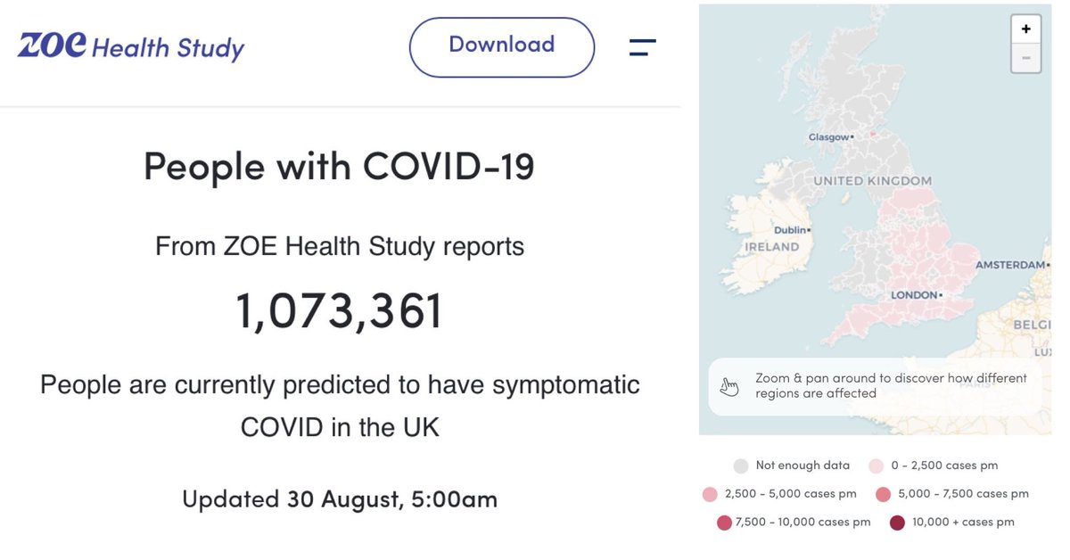 The one piece of surveillance we do still have in the U.K. is the Zoe Covid Study which is *not* government operated. This study estimates that over a MILLION people in the U.K. are currently infected with Covid… …with around 85,000 NEW infections being added each new day.