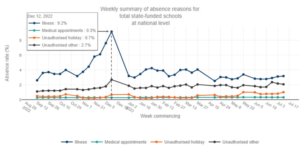 The truth is that our children have been hammered by continually high rates of sickness, particularly last Autumn & Winter… By the end of last Autumn term, absence rates purely due to illness peaked at a whopping 9.2%.