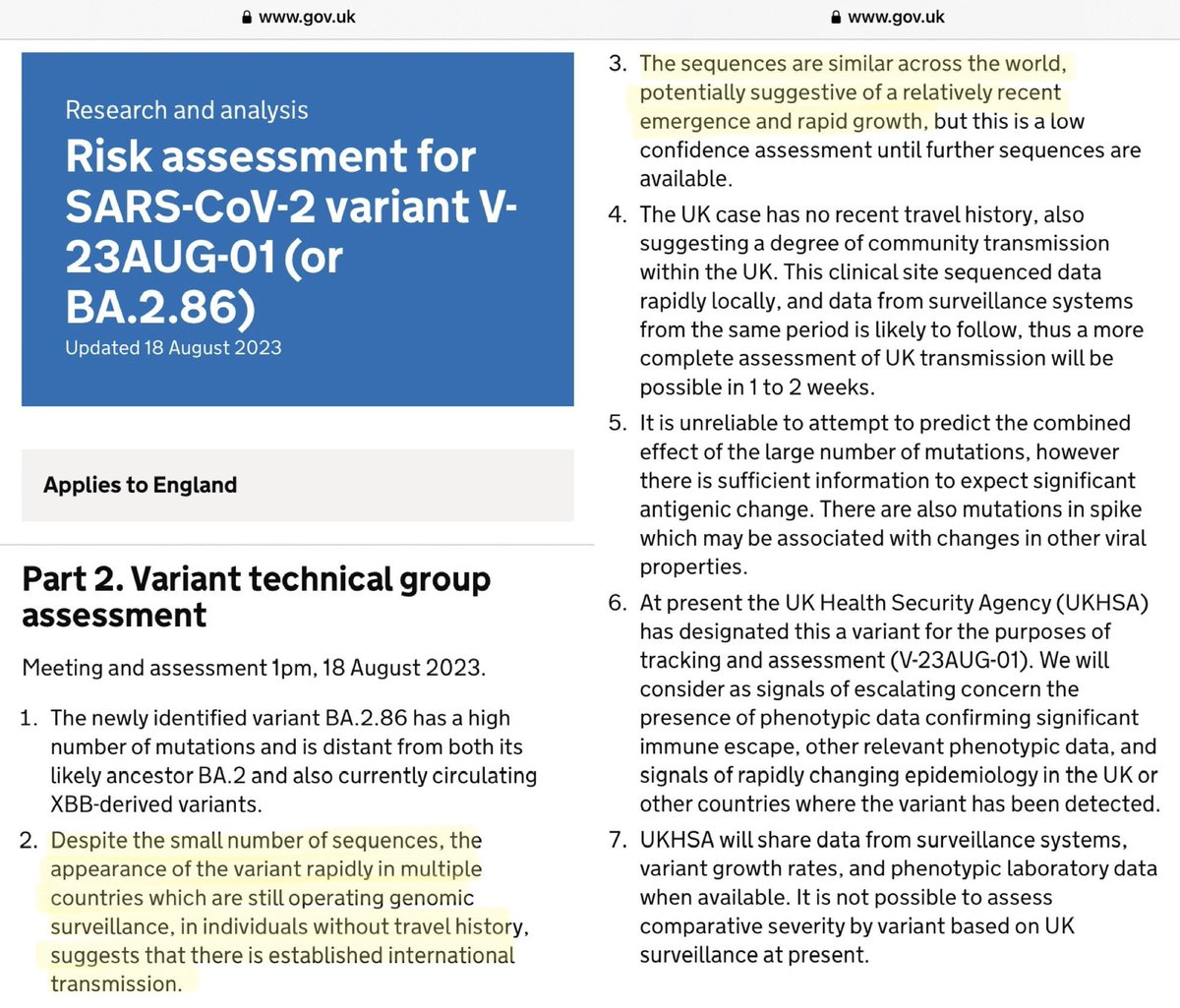 The @UKHSA acknowledge this in their recent risk assessment for this variant, stating: “Despite the small number of sequences, the appearance of the variant rapidly in multiple countries suggests that there is established international transmission.”