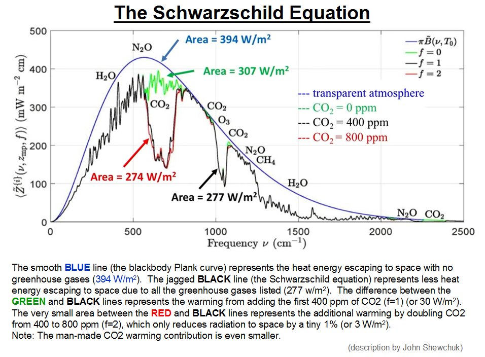 The Schwarzschild Equation (shown here as a diagram) is used by all the IPCC climate models. This equation clearly shows that doubling CO2 only results in a 1% warming effect. In other words it's negligible. https://t.co/qBURpVfFEn