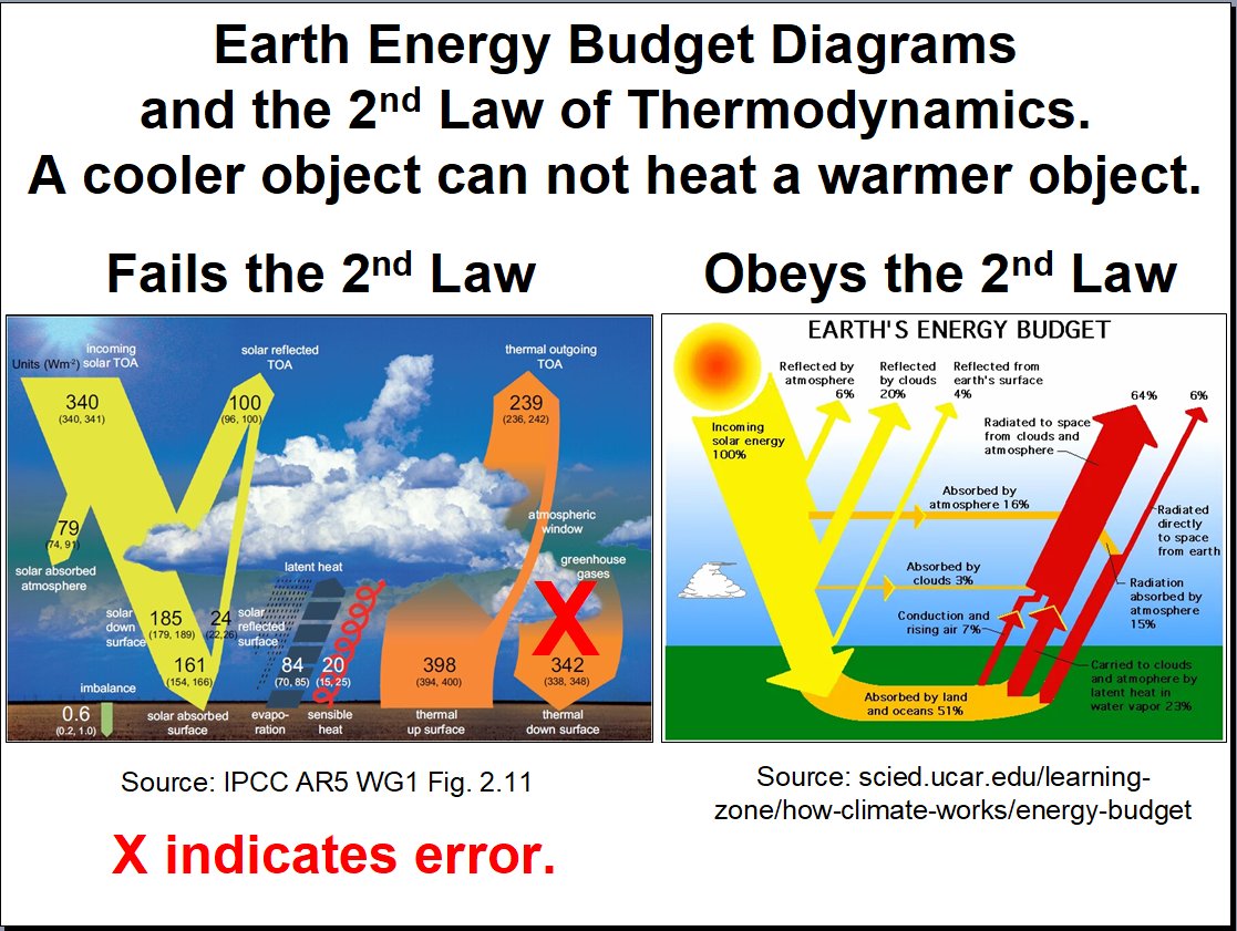 The IPCC continues to spread misinformation with their energy diagrams. A cooler object (air) cannot heat a warmer object (earth). https://t.co/6O8Wf5UgiV
