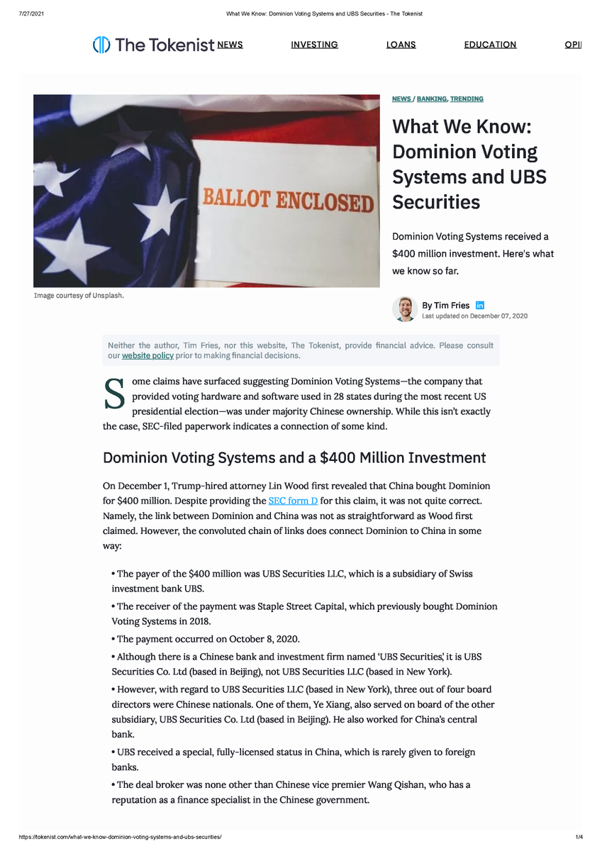 It's time you see and read the proof of the election lies and we need answers from the 17 Intel agencies, "Why did they give our country over to China without a fight." Free Trump and arrest those in Government that allowed this to happen. This Domminionvote report is from 12-22-2020