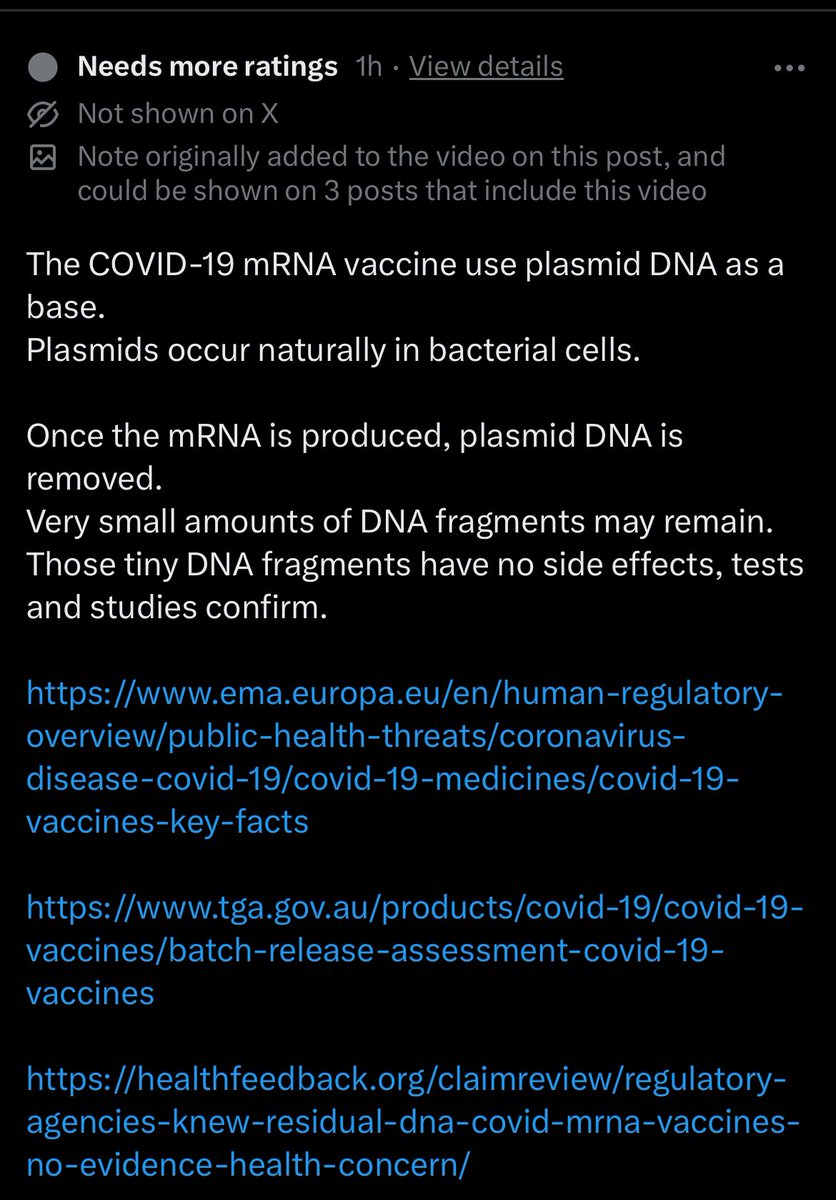 Lol… Community Notes “timy DNA fragments have no side effects” 😂 https://t.co/bV77SLB6dP