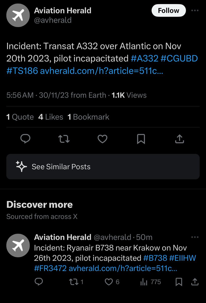 Two pilots incapitated in 6 days. A332 over Atlantic and RyanAir B738 A disaster waiting to happen! H/T:@otsleeel https://t.co/XPryaMY137