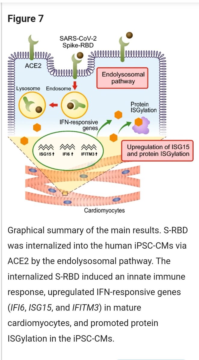 💓💓💓 👀 Possible pathway SARS-CoV-2 spike protein can enter heart muscle cells.👇 SARS-CoV-2 spike receptor-binding domain is internalized and promotes protein ISGylation in human induced pluripotent stem cell-derived cardiomyocytes (Osaka 🇯🇵2023) https://www.nature.com/articles/s41598-023-48084-7