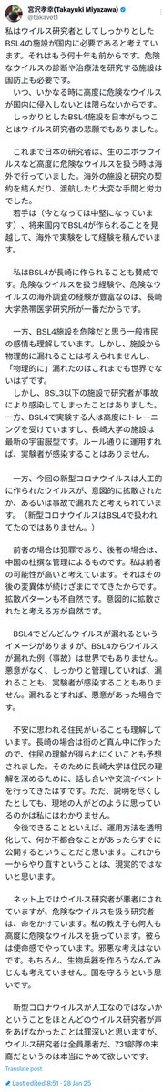 It is NOT a question of Nagasaki locals concerned. It's about the threat a lab leak could cause another pandemic. I'm pleased to help with the English translation, so overseas can join the discussion. The thread in translation: