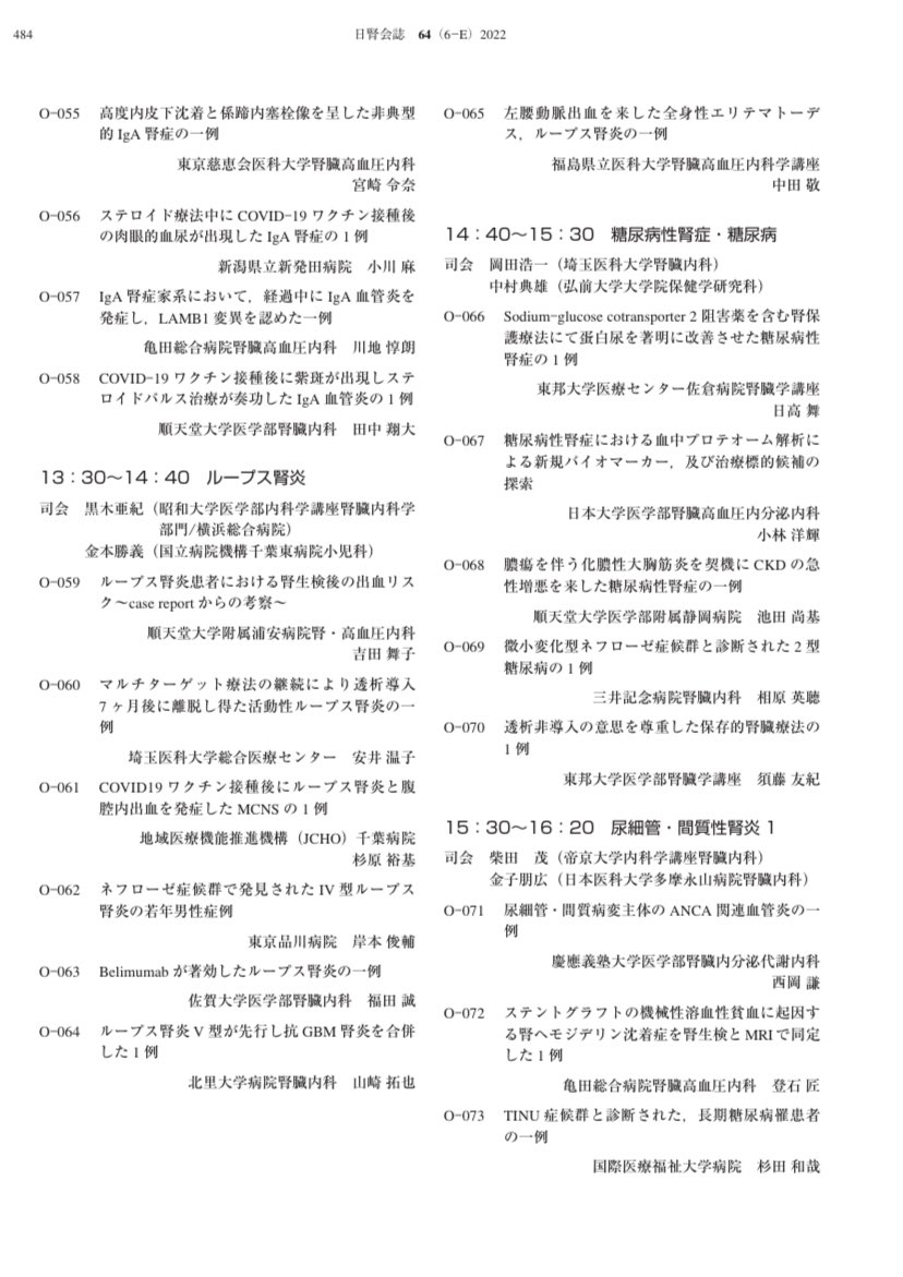 @a_kruschke 疫学的にはよくわかりませんが、症例報告は非常に多いですね(特にワクチン関連)。日本腎臓学会東部学術大会2022はコロナワクチン接種後のIgA腎症・肉眼的血尿・ANCA関連腎炎・ネフローゼ症候群の報告の花盛りでした。 https://t.co/f5vMRPIfbW