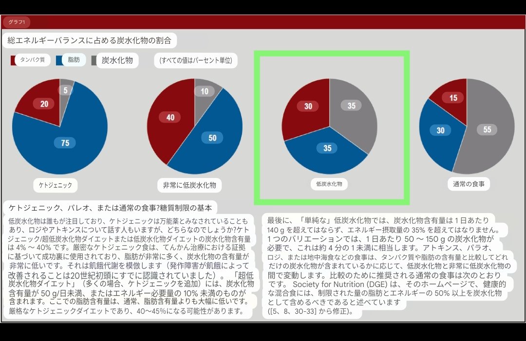 @kakashi_tdn @maiti_86 低炭水化物食につていては支持しているようですが【1/4 が炭水化物で構成される必要があり、日本の伝統的な食生活がこれにあたる】という考えのようです。 米国の低炭水化物食の研究では肥満に至る方も多いらしく問題に感じているようでした。