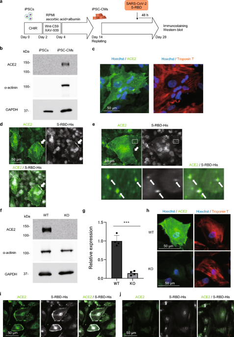 "..the iPSC-CMs were incubated with purified His-tagged SARS-CoV-2 S-RBD protein, [..] for 48 h." " Immunostaining revealed that S-RBD accumulated at the periphery of the iPSC-CMs co-localized with ACE2 (Fig. 1d👇) .."