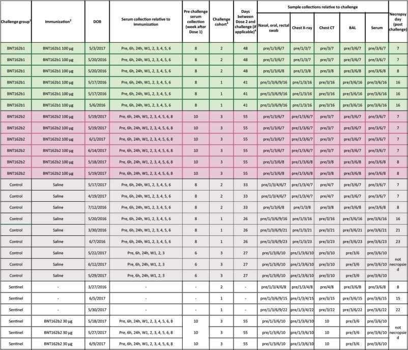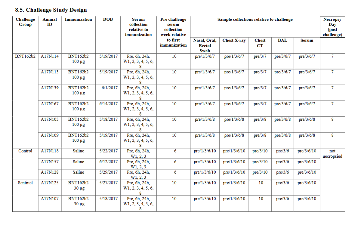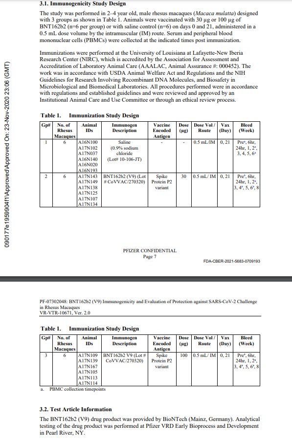 so the submitted pfizer nonclinical study 10671 only includes the data from the Nature paper's "challenge cohort 3" aka. the 100 ug b2-dosed animals that were challenged at the timepoint of maximum vaccine effect🙄 excuse me but wtf? where is the b1 monkey data?