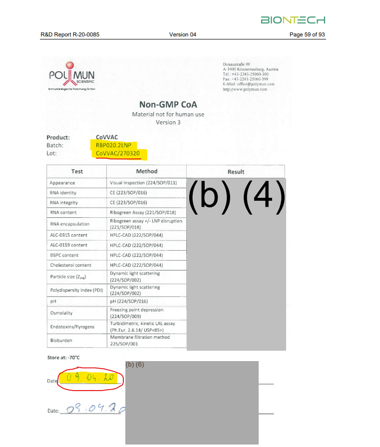 wow it's like the dates are all made up and don't matter at all. this is now the third nonclinical study i've found claiming to have initiated experiments BEFORE the corresponding nonclin batch was released by polymun(38166 and R-20-0085 also have this "problem") https://t.co/NPIvccUiuv
