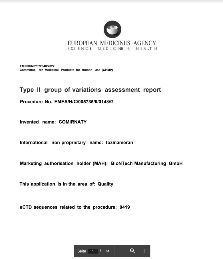 the table just says the previous changes are to be approved. then come the EPAR changes, guess the plebs should be informed, eh? first comes a long version of what was said previously, with some extra detail on how cucked the EMA is to approve this. https://t.co/w5aiwvfHu9