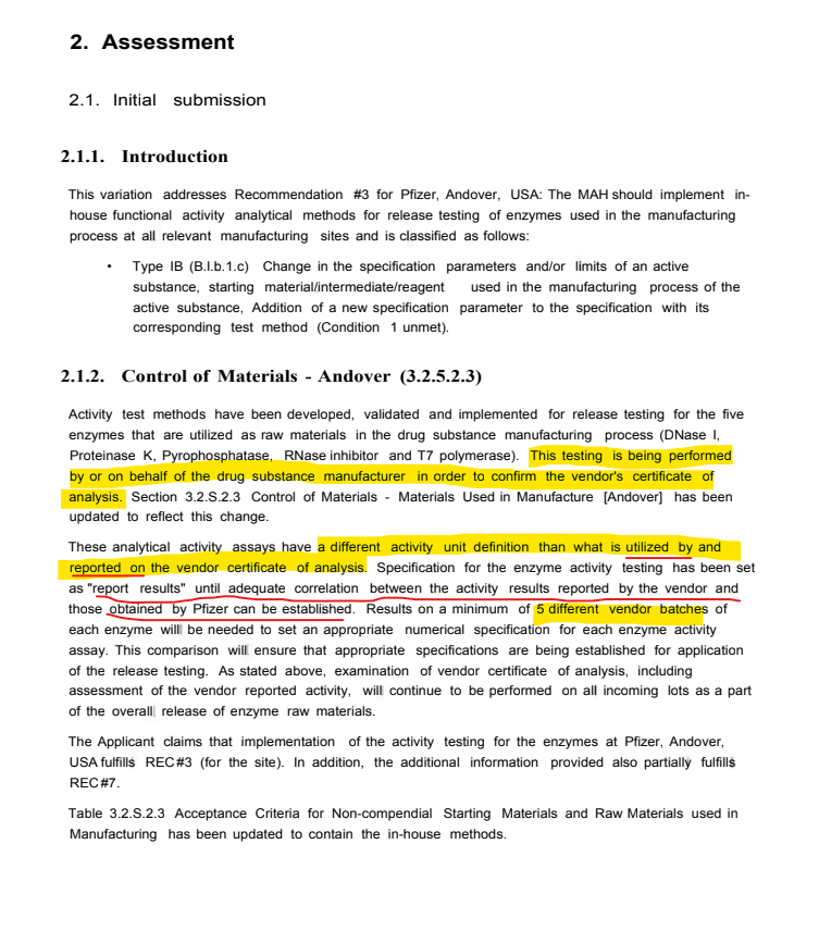 the on-site andover tests used to validate the enzymes used return results in different units than the vendor certificate of analysis! the vendors check their stuff before sending to pfizer, but andover uses different measures?? please correct me if im wrong https://t.co/lPv4FF4dPl