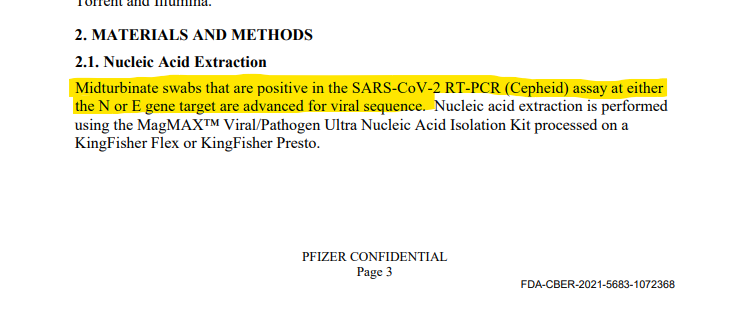 "Midturbinate swabs that are positive in the SARS-CoV-2 RT-PCR (Cepheid) assay at either the N or E gene target are advanced for viral sequence." these are the swabs from C4591001 trial participants. https://t.co/ihaafqwWDq