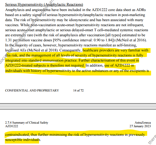 @eh_den @ClareCraigPath just browsing through the safety summary at work. healthcare providers are familiar with anaphylaxis soooo it's not worth bothering with. OH and all the excipients you might be allergic to are of course known and communicated to you so you can make an informed decision 🤡🤡