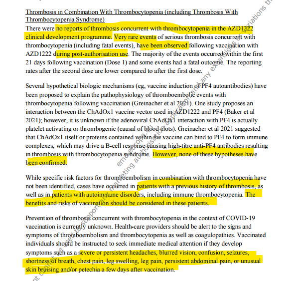 no TTP "reported" during the trial but "very rarely observed" in post-marketing - MoA is "unconfirmed hypothesis" - and a whole 'nother bunch of subjects for whom "the benefits and risks of vaccination should be considered". very unusual tones for a vaccine company 😊
