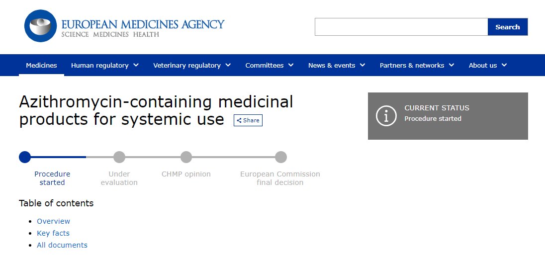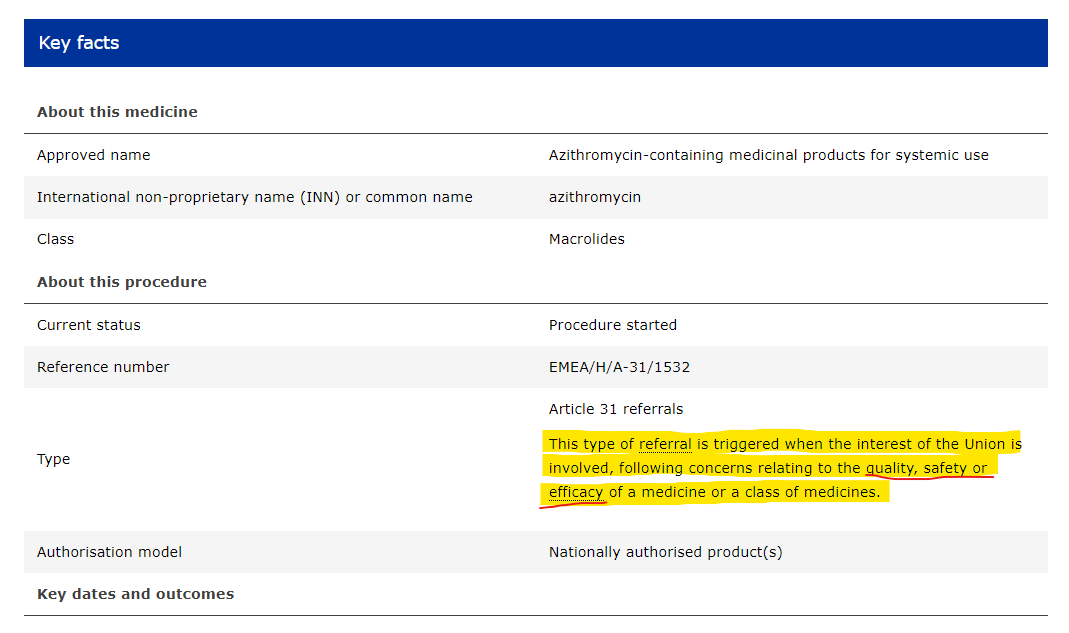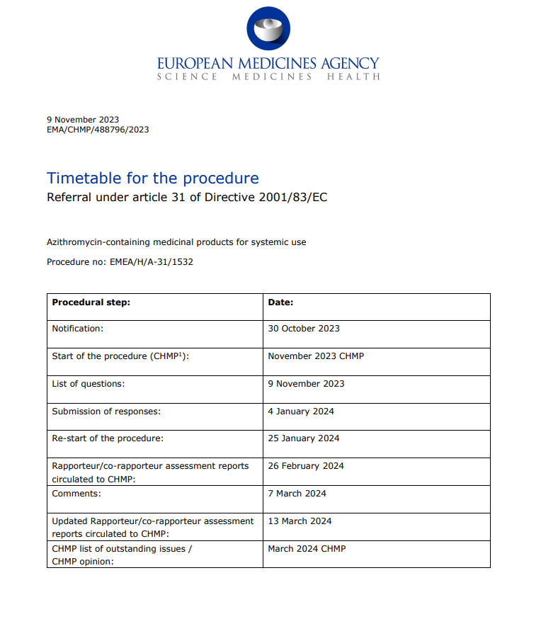 https://www.ema.europa.eu/documents/referral/azithromycin-article-31-referral-timetable-procedure_en.pdf and finally a timetable for the whole "procedure". the "review" of an actually "safe & effective" antibiotic will be done in four months from now. anybody wanna guess what their decision will be?