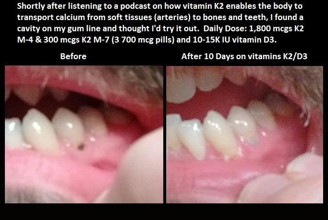 Vitamin K2 vit. K2 is crucial for the density and micro-hardness of enamel through it's prevention of ectopic expression ('abnormal functioning') of MGA (matrix Gla protein) MGA is what prevents calcium ions and other minerals to be deposited into the soft tissues and when this protein is properly expressed it leads to increased calcium/mineral deposition in the hard tissues (including enamel) K2 also improves enamel mineralization by activating Osteocalcin and working synergistically with vitamin D3 Supplementing K2 in MK-4 form or even MK-7 is a great idea although increasing your K2 intake through diet is even better K2 sources: - eel - goose liver - high quality egg yolks - hard cheeses - natto