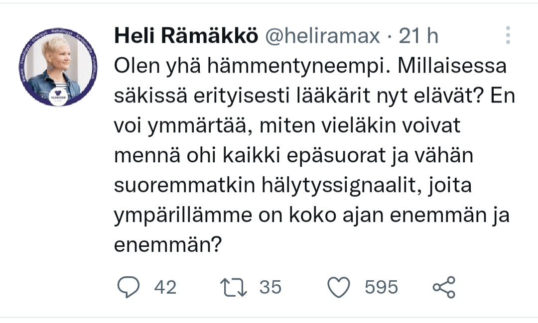 Heli oli näköjään estänyt minut, mutta sanotaan tähän sen verran, että jos Heli olisit lääkäri, niin voisit ymmärtää rokotuksista sen verran, ettet olisi hämmentynyt koko ajan aivan kaikesta. Itse olen hämmentynyt siitä, kuinka hämmentynyt Heli voi koko ajan olla. https://t.co/mGE8ELX3hs
