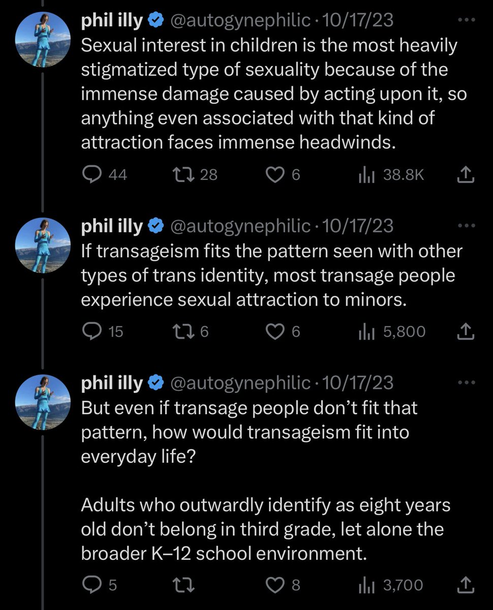 I believe I was making a point about AGP acceptance leading to pedo shit the other day and was told I was being hyperbolic. Well here’s the AGP in question doing exactly that, with a side of bestiality. Please never let anyone forget that James Lindsay defended this guy. https://t.co/wTLOTrstUb