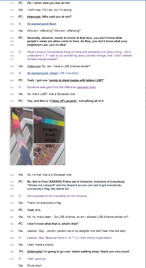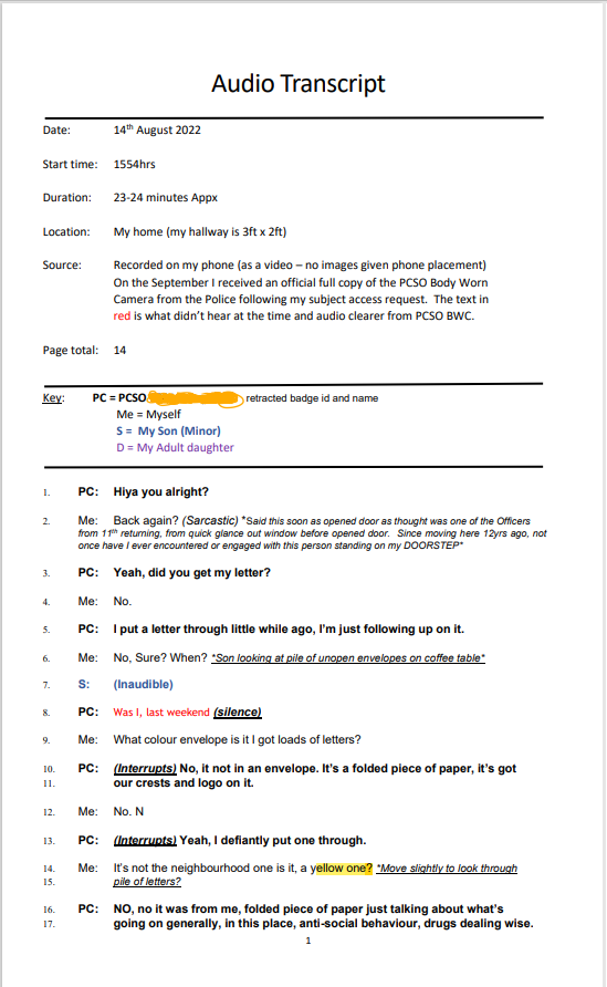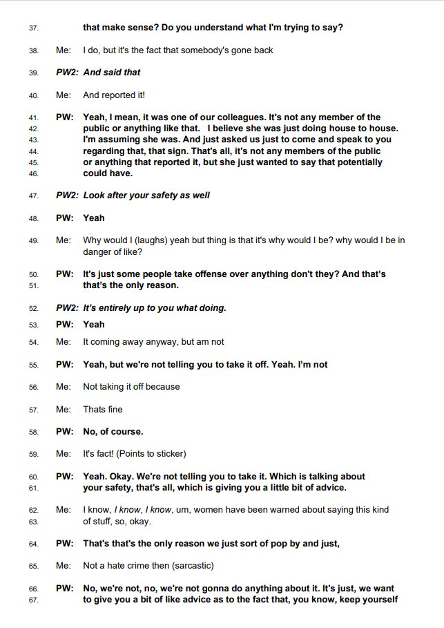 Transcript - 14th Aug from PCSO (yeah that one!!) Since reporting my sticker having seen it 'delivering YELLOW letter' and lies so much, it turns she reveals a lot thru conv..turns out 6 X she been in my Close since yet only noticed sticker whilst she was standing there! https://t.co/4DOTeJIBtM