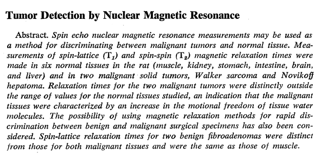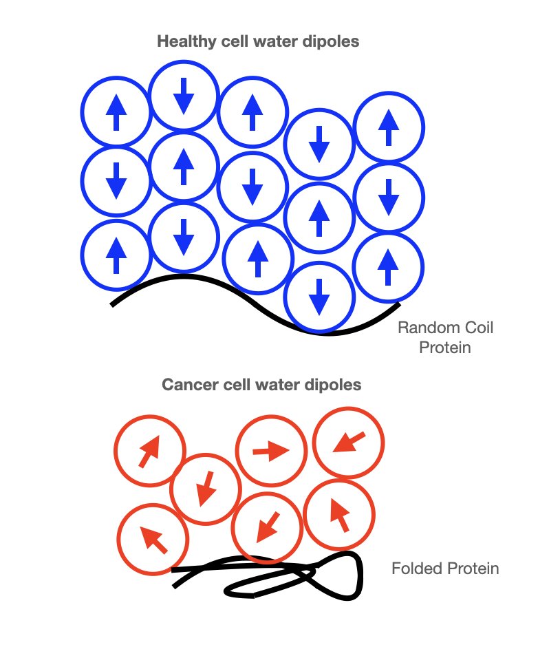 Cancer cells were known to be electrically depolarized, so the water structure was expected to be different as well. This insight led to the MRI as a way to detect cancer through water structure differences. (The MRI measures water structure, roughly)