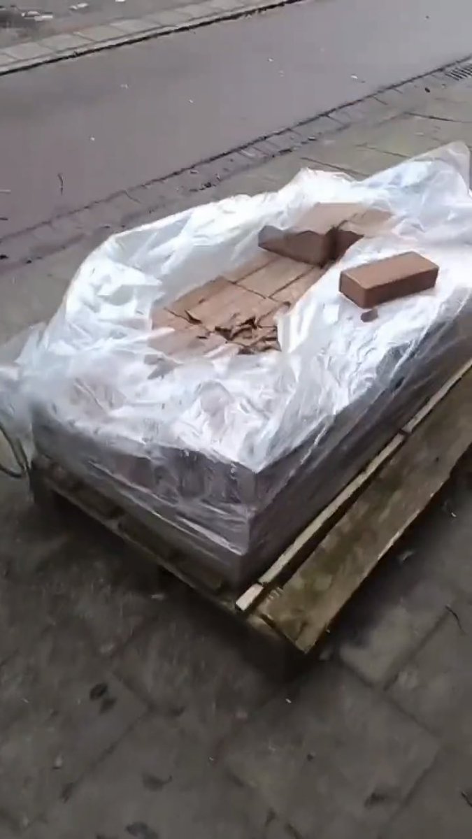 13. Onderweg zien veel demonstranten losse pallets bakstenen liggen vlakbij het Museumplein. Bijzonder dat er wel gefouilleerd werd op wapens, maar dat dit zo voor het grijpen lag vlakbij. Iedereen liet het liggen. #2januariAmsterdam https://t.co/o7cDkPbvY5