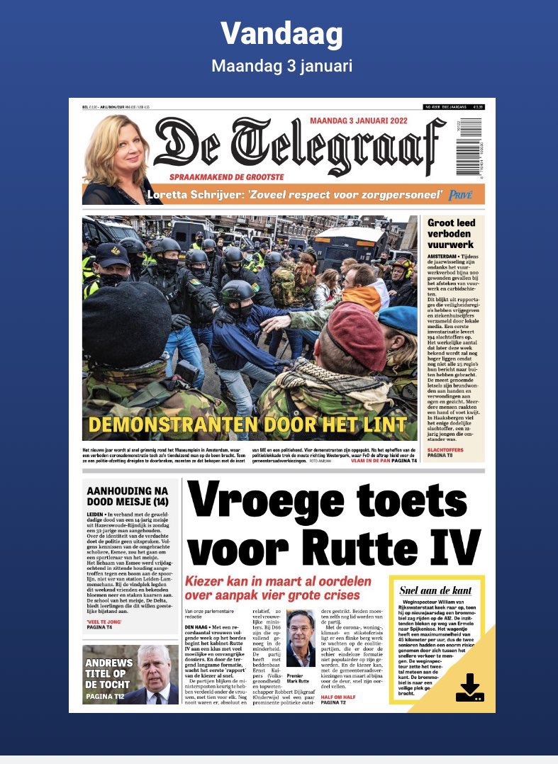 17. Vandaag bericht de @telegraaf er onderstaande over. Ook de @NOS of het @RTLnieuws reppen met geen woord over mogelijk escalerend optreden door de politie. Buitenlandse media heeft het wel opgepakt. #2januariAmsterdam https://t.co/vrMiGxAuJm