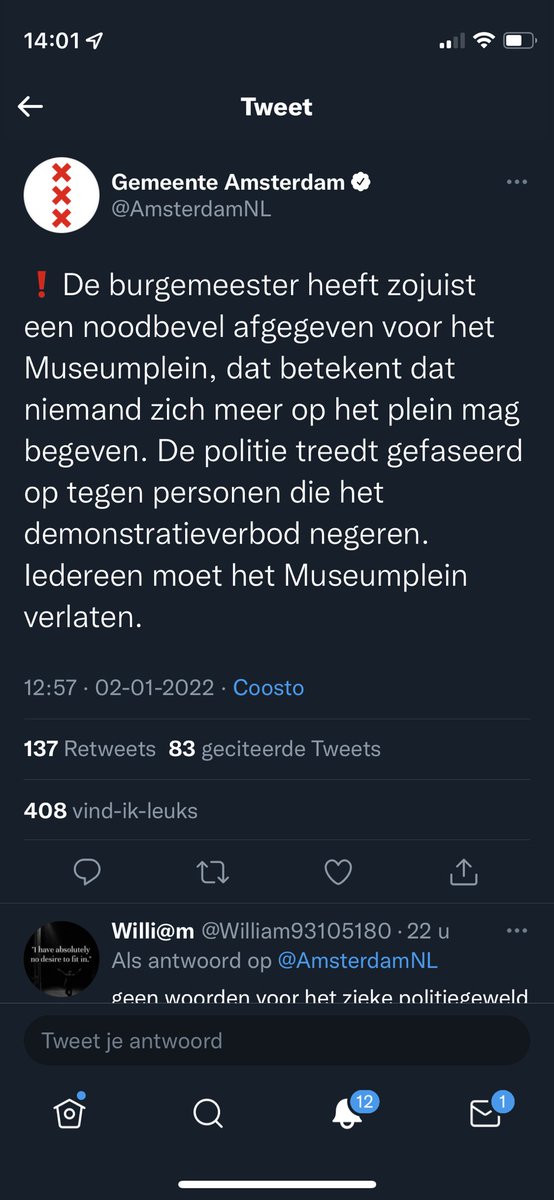 7. De @nos bericht over het noodbevel van Halsema. Ook geven ze aan dat er volgens aanwezige journalisten zo’n 2000 mensen zouden zijn, dit is aantoonbaar op dat moment niet waar. Geen woord wordt er gerept over de gecreëerde fuik. #2januariAmsterdam https://t.co/JV9zPX6IF0