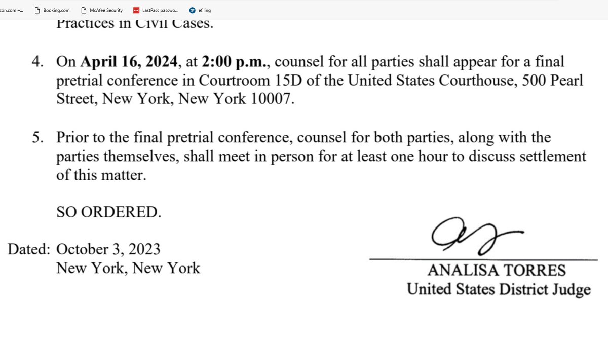 Option #3: The SEC settles all litigation against Ripple and the individual Defendants. Yes, this could happen at a settlement conference (such as the Judge required below) but the SEC has shown very little desire to compromise thus far. https://t.co/QjNeKfw9vA