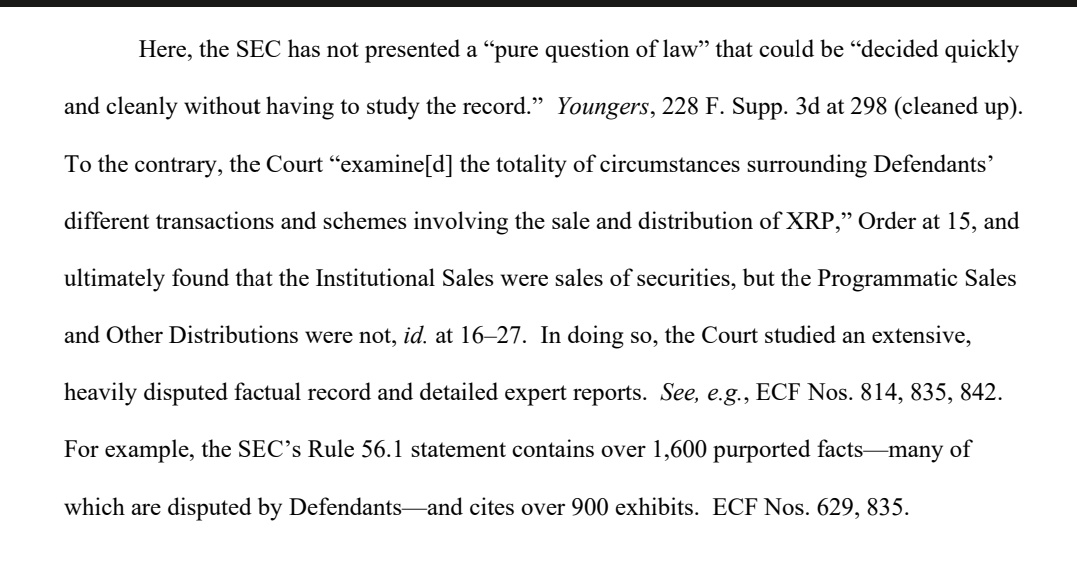 So, the SEC wants to push the entire case to trial and then appeal the parts of the judgment against Ripple it doesn't like? Fair enough, but the most likely outcome in that situation is a final resolution in 2027. June 14, 2027 to be exact. Good luck with that.