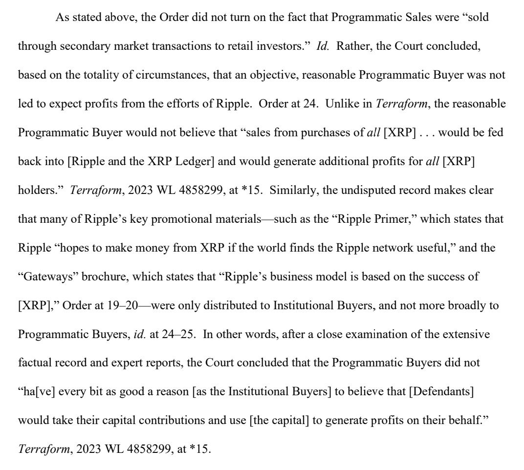 What the Terra Judge doesn't know is that numerous XRP purchasers submitted unopposed affidavits that they didn't even know who or what Ripple was when they bought. That's why EVIDENCE matters. And there's no evidence in this case, yet. https://coindesk.com/policy/2023/07/31/judge-rejects-ripple-ruling-precedent-in-denying-terraform-labs-motion-to-dismiss-sec-lawsuit/ via @coindesk
