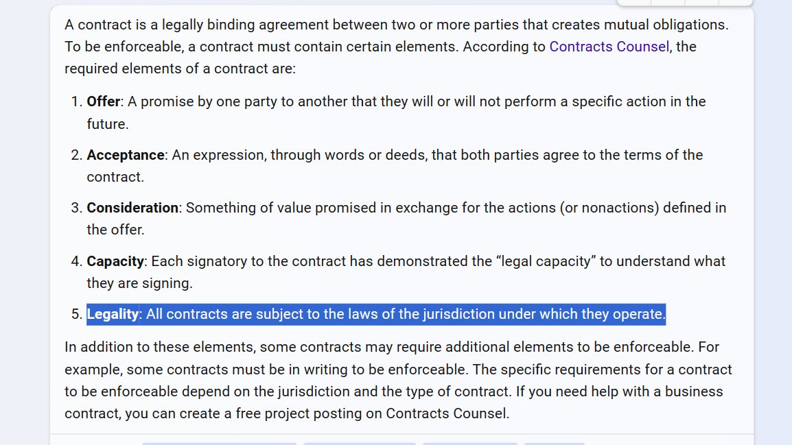 Yes, on your first day of law school, you learn that most legal tests are based on "elements" such as is found in the Howey test for whether an asset is sold as a security. Eg., The test for whether you've formed a contract with someone requires you look at 3-5 "elements." https://t.co/yq4tDWv7PX