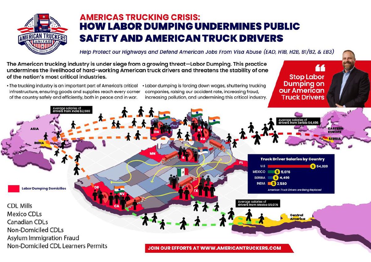 🚨The American Trucking Industry has been invaded by hordes of illegal immigrant truck drivers and their respective fleet owners. This video is some of our evidence of how these operations have absolutely no regard for American Safety regulations and have created an unprecedented Safety Epidemic on Americas Highways. Hacking driver logbooks! Telling drivers they must drive over 15 hours per day! All while working from places in Eastern Europe and Asia insulated from your families being able to seek justice and hold them accountable. THIS SHOULD BE STOPPED IMMEDIATELY! BAN ALL NON-DOMICILE CDLs BAN ALL FOREIGN CDLs ON AMERICAS HIGHWAYS