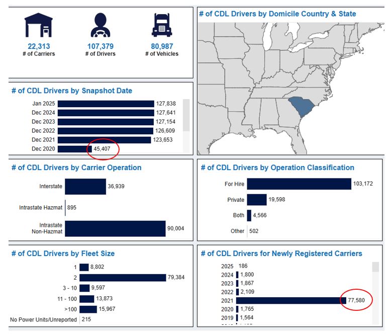 Why did South Carolina add 77,580 drivers in 2021 when they typically only issue about 1600 a year?? Did Fedex and UPS move their Headquarters to SC? Or did they decide to pass out some CDLs? Who did they give them too? We know! Do you? https://t.co/zFSxN1KHE6